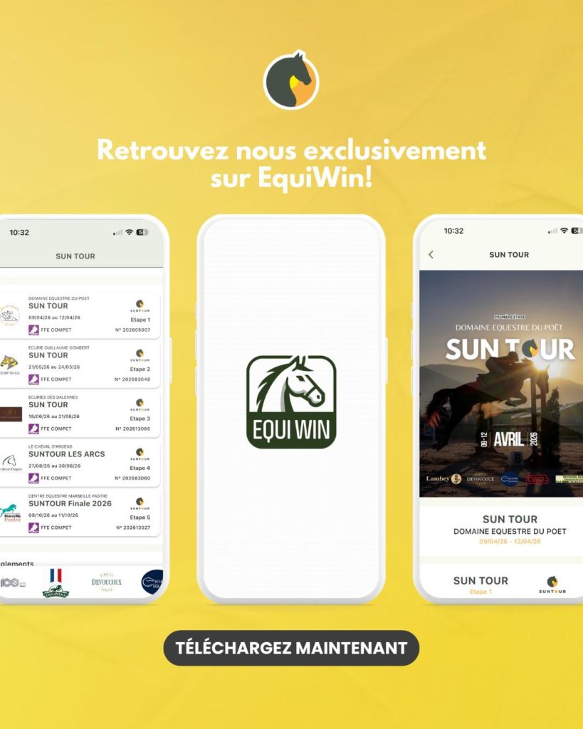 Nouvelle expérienceRetrouvez toutes les étapes et infos du Sun Tour exclusivement sur EquiWin www.equiwin.frDisponible sur l’App Store et Google Play